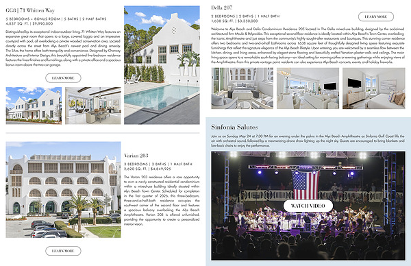 The Varian 203 residence offers a rare opportunity to own a newly constructed residential condominium within a mixed-use building ideally situated within Alys Beach Town Center. Scheduled for completion in the first quarter of 2026, this three-bedroom, three-and-a-half-bath residence occupies the southwest corner of the second floor and features a spacious balcony overlooking the Alys Beach Amphitheatre. Varian 203 is offered unfurnished, providing the opportunity to create a personalized interior vision.